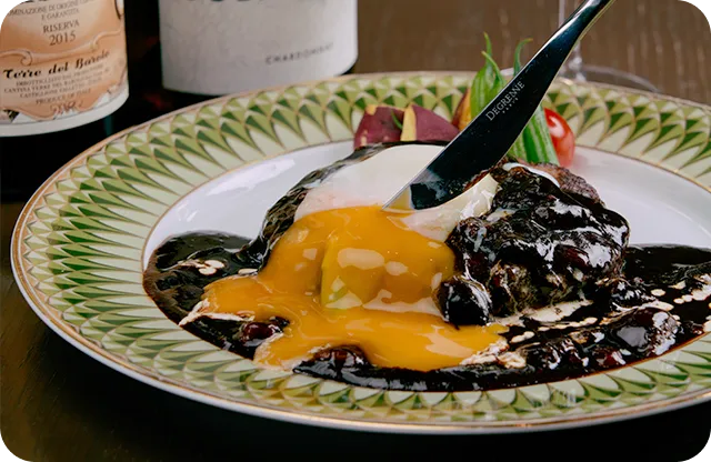 厳選された豚を、培われた技術と素材の「黄金比」で仕上げた極上の一皿をお届けします。深みと品格は、まるで特別なアートのよう。大切な人との語らいや、自分へのご褒美にふさわしい上質な食体験を提供します。